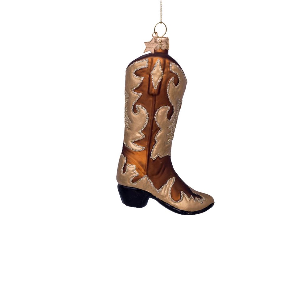 Vondels Ornament glass glitter cowboy boot H10.5cm Brown Gold