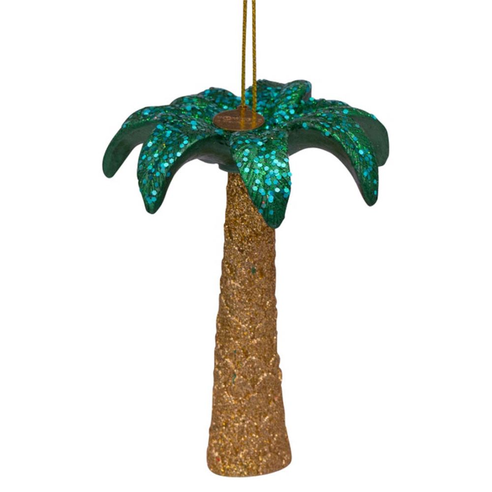Vondels Ornament Glass Gold Green Glitter Palmtree 9cm Green