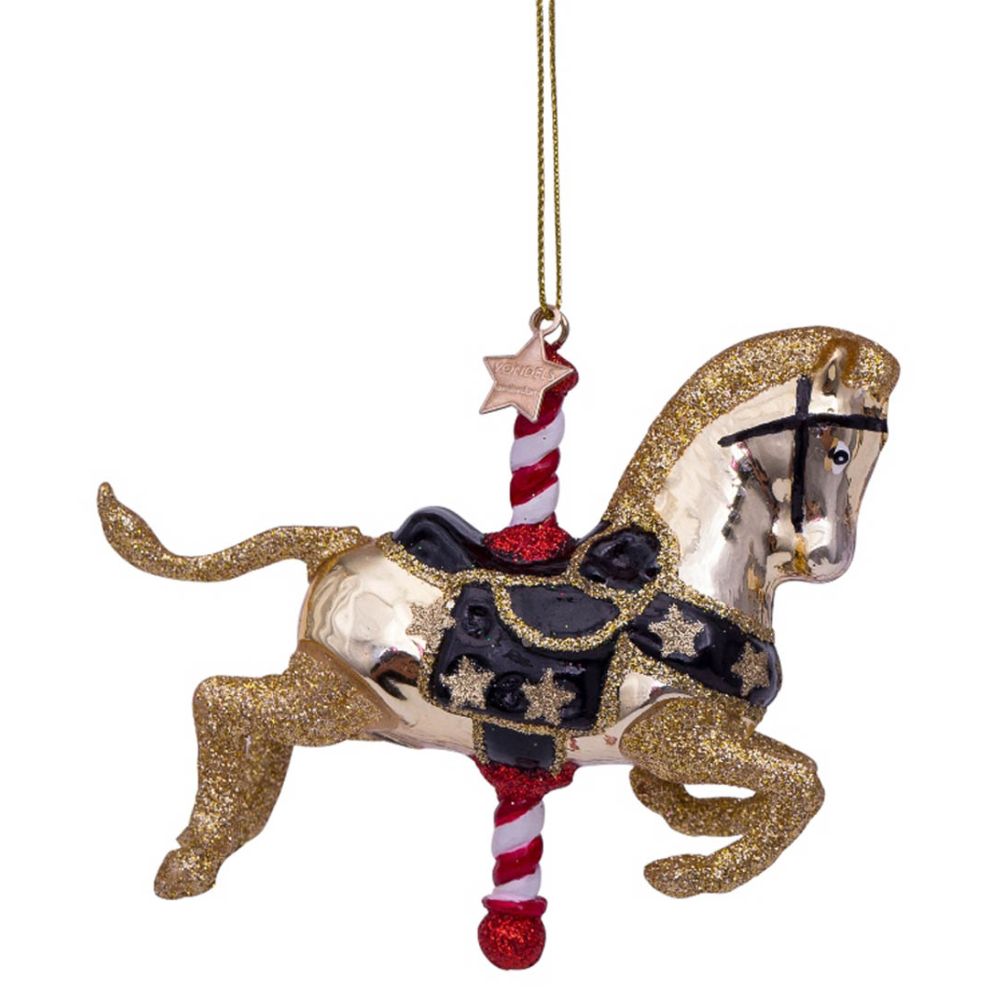 Vondels Ornament Glass Shiny Gold Carousel Horse 9cm Gold