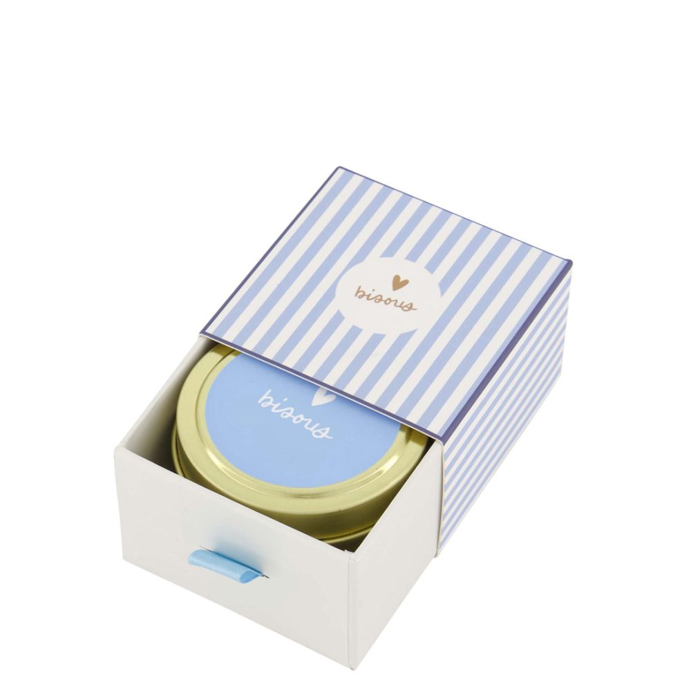 Zusss Geurkaars Schuifdoosje Bisous Wit Blauw