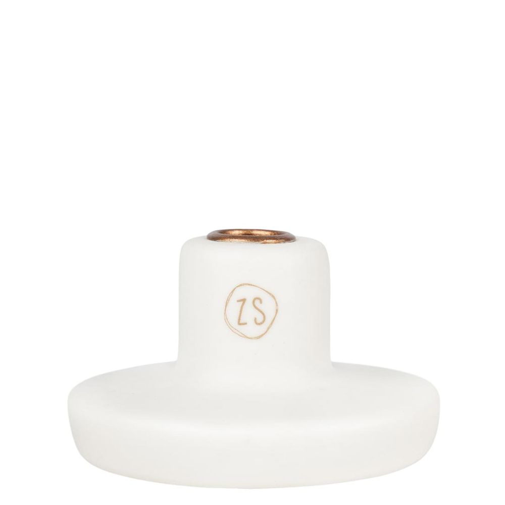 Zusss Klein Kandelaartje Rond Keramiek Gespikkeld Wit