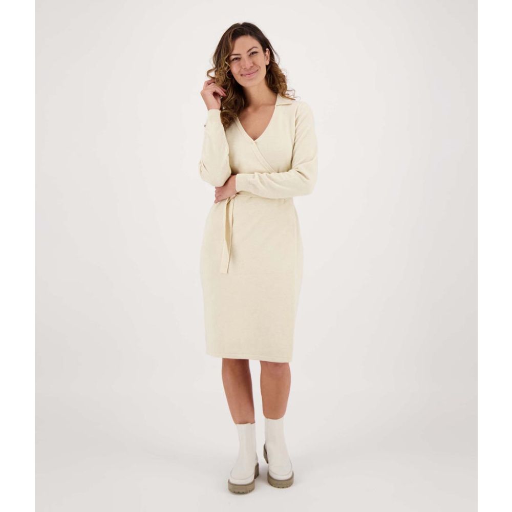 De Wikkel Zusss staat bekend om zijn kwaliteit en tijdloze ontwerpen, en deze jurk is daar geen uitzondering op. Met zijn zandkleurige tint en effen patroon is deze jurk veelzijdig en gemakkelijk te combineren met andere kledingstukken.